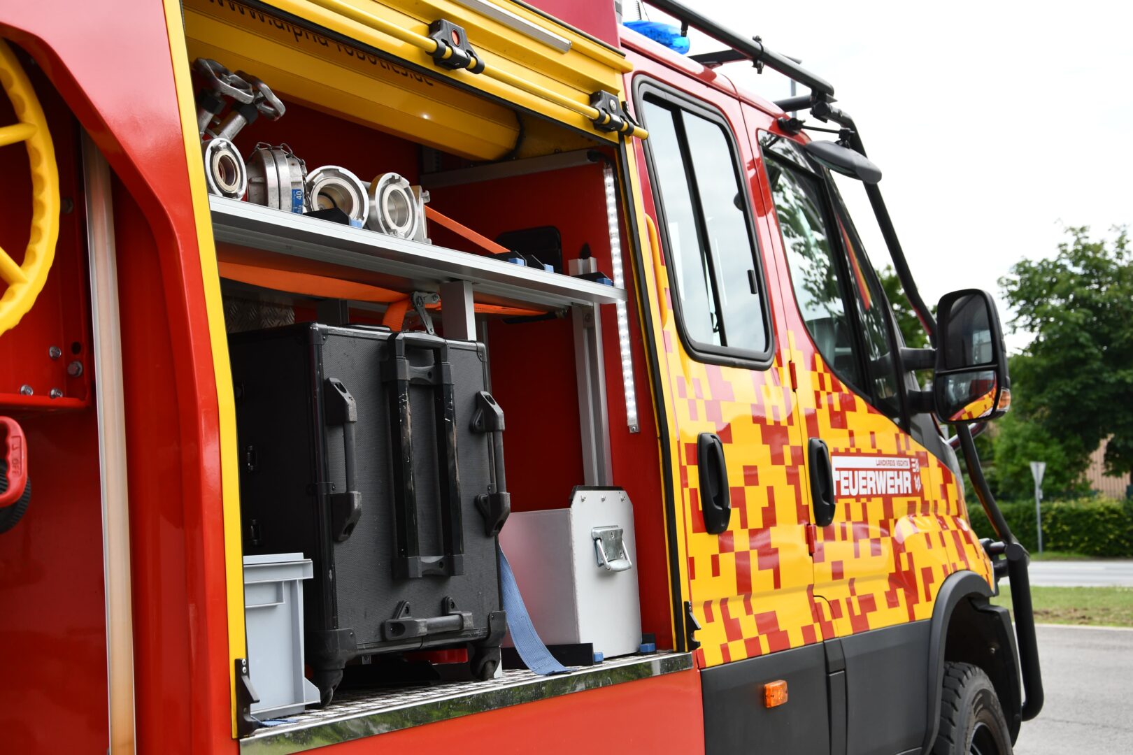 Das Fahrzeug überzeugt durch seine geländefähige Bauweise und ist dadurch besonders geeignet für Einsätze abseits befestigter Straßen. Ein weiteres Highlight ist das integrierte Hochdruckpumpe mit einem Betriebsdruck von bis zu 40 bar, das eine effektive Brandbekämpfung auf engem Raum ermöglicht. Zusätzlich ist das Fahrzeug mit Atemschutzflaschen ausgestattet, wodurch ein flexibler und sicherer Einsatz unter erschwerten Bedingungen möglich ist.