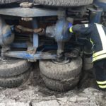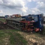 Bohrkran stürzt in Seitengraben