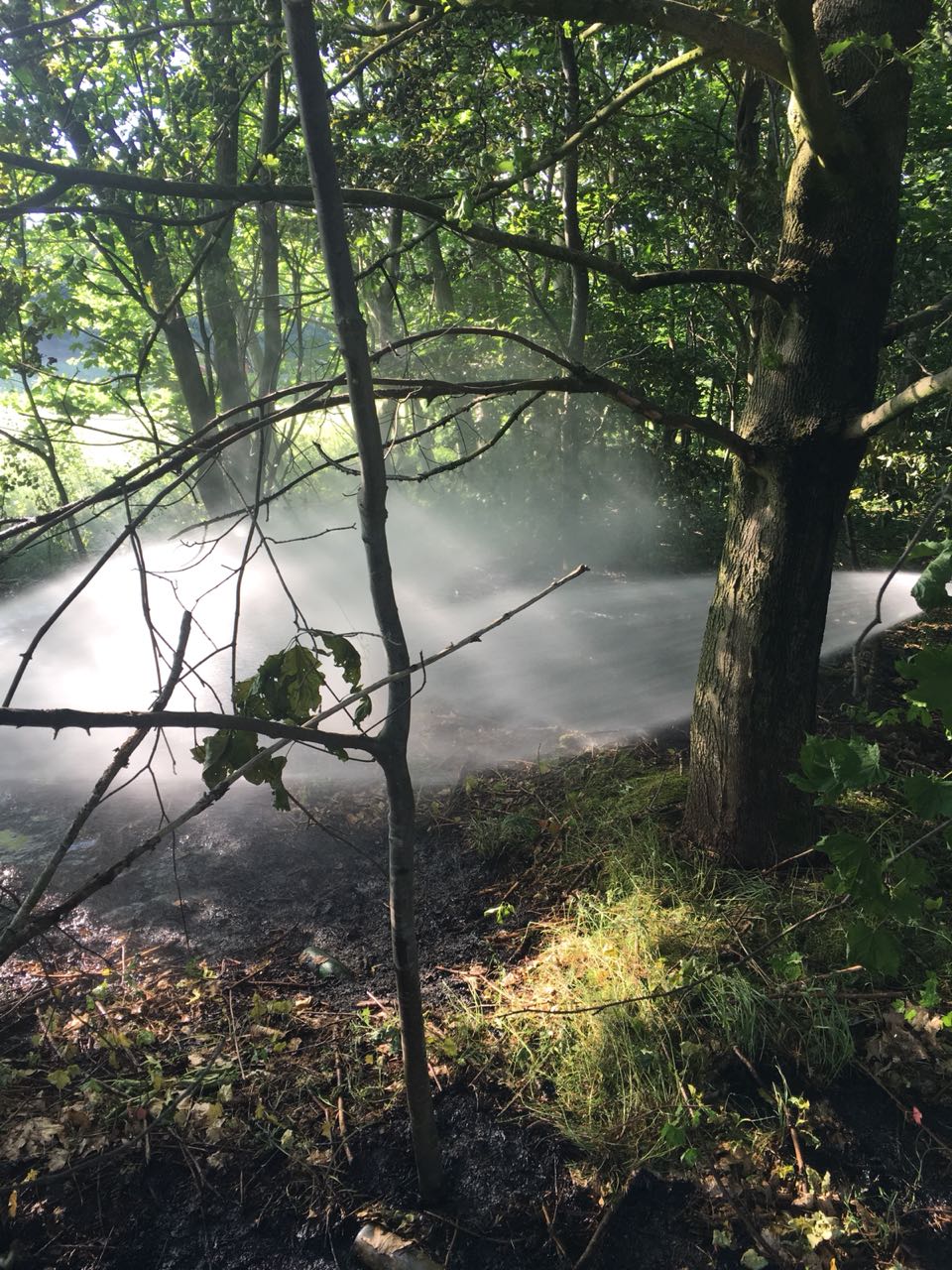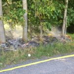 Der mit dem VRW ausgerückte Zugführer konnte schnell Rückmeldung geben das es sich um keinen Moor- sondern einen Wald-/Böschungsbrand auf einer Fläche von ca. 10×15 Metern handelt.
