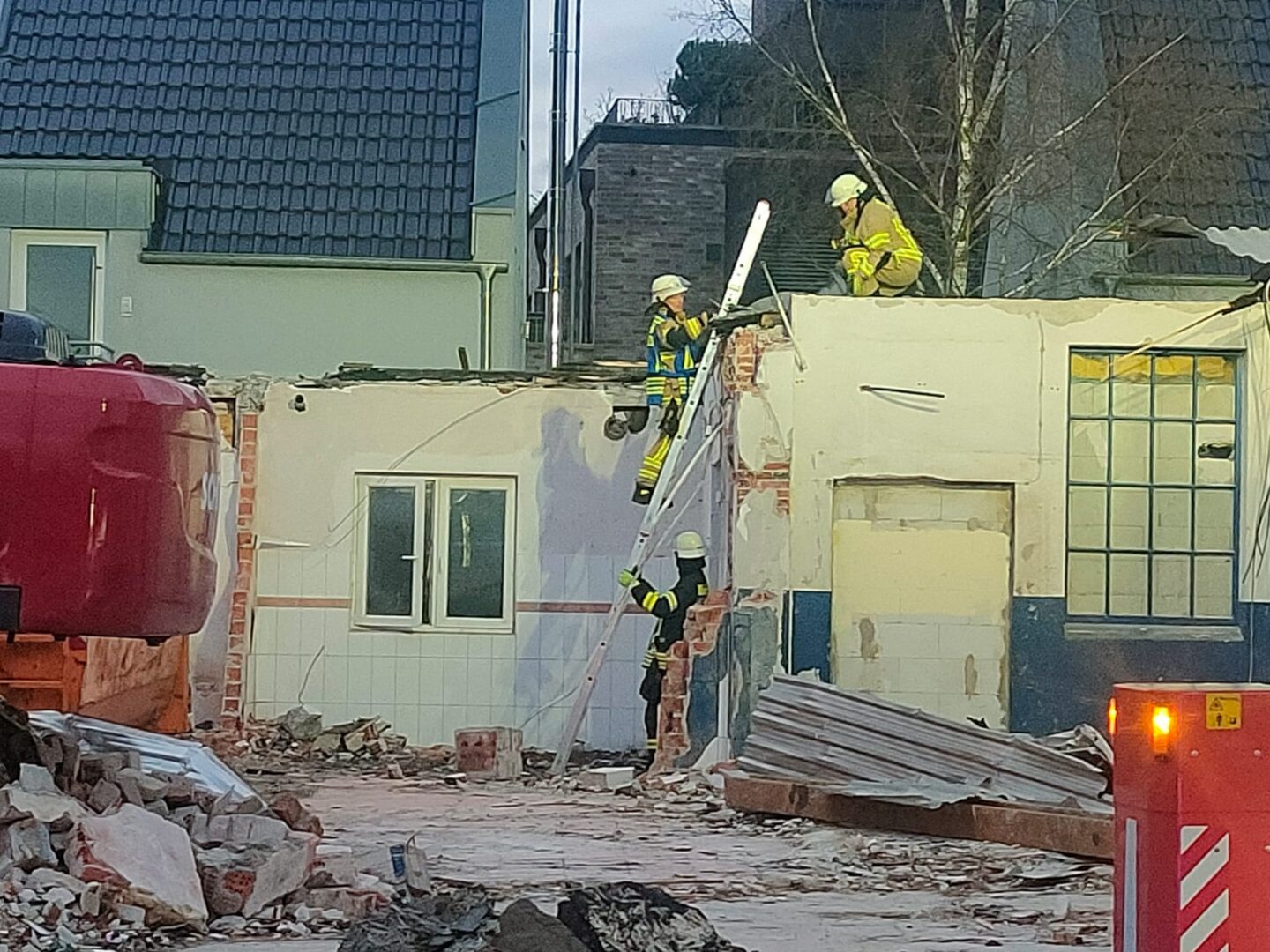 Vor Ort drohte die Fassade eines im Abriss befindlichen Gebäudes wegzufliegen.