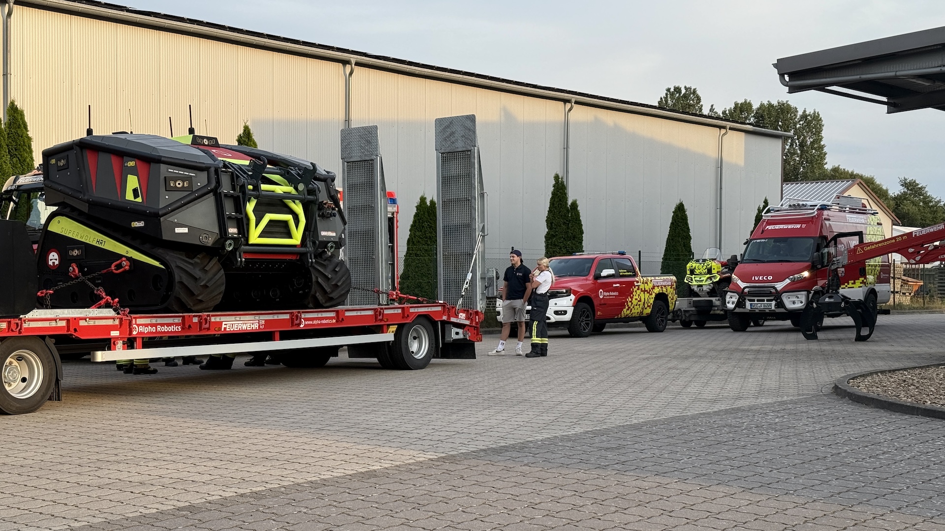 Der Superwolf HR1 der Firma Alpha Robotics kam erstmals zum Einsatz, um Container auseinanderzufahren, damit gezielte Löscharbeiten möglich waren. Die Feuerwehr Lohne setzte den Wolf R1 ein, um die einzelnen Container sicher abzulöschen.
