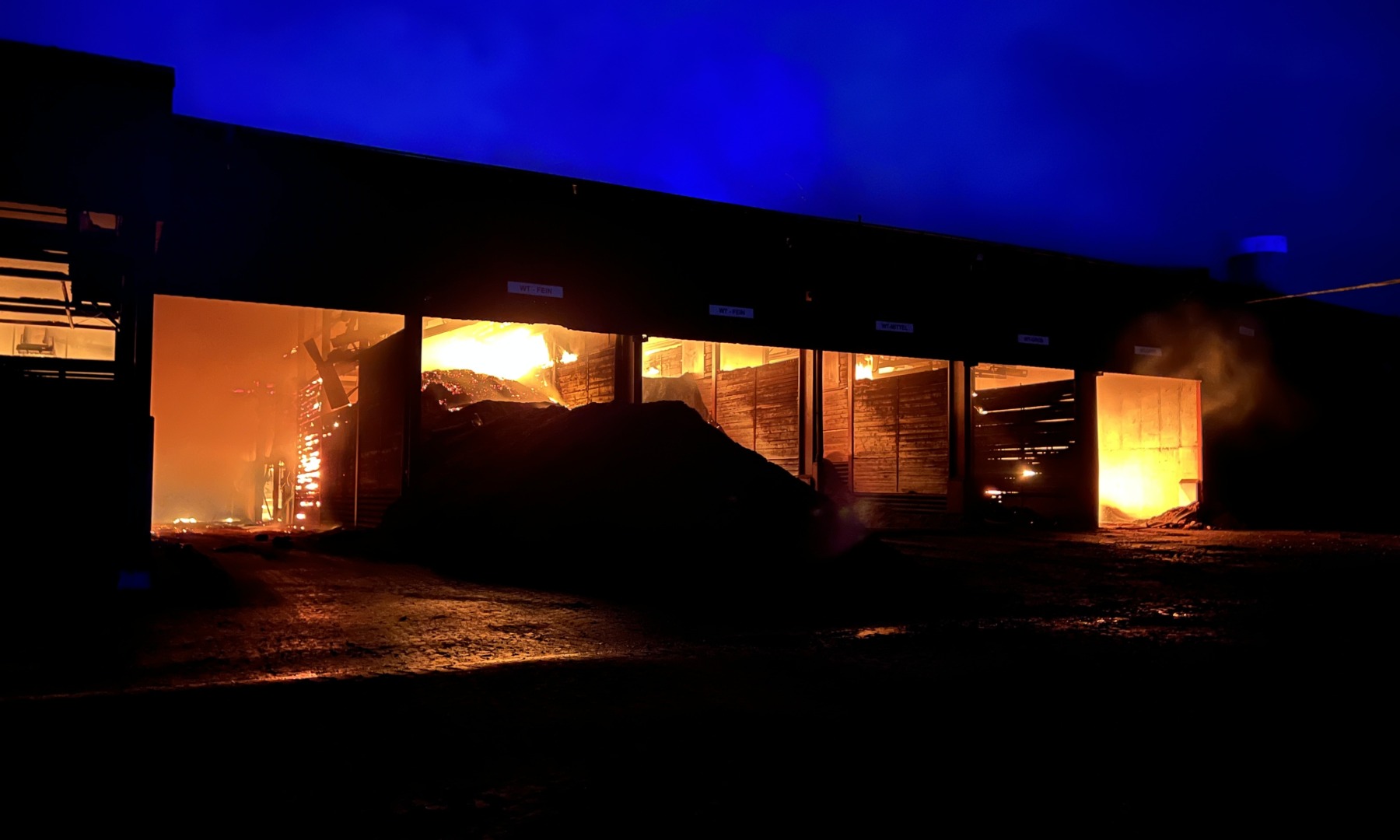 Lagerhalle in Vollbrand