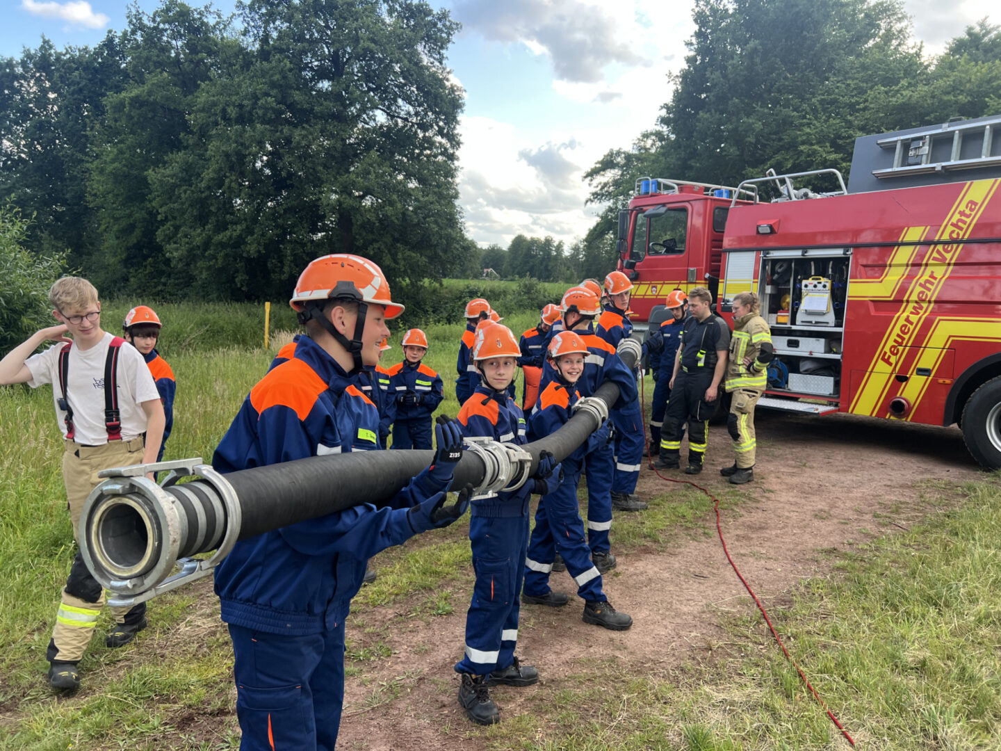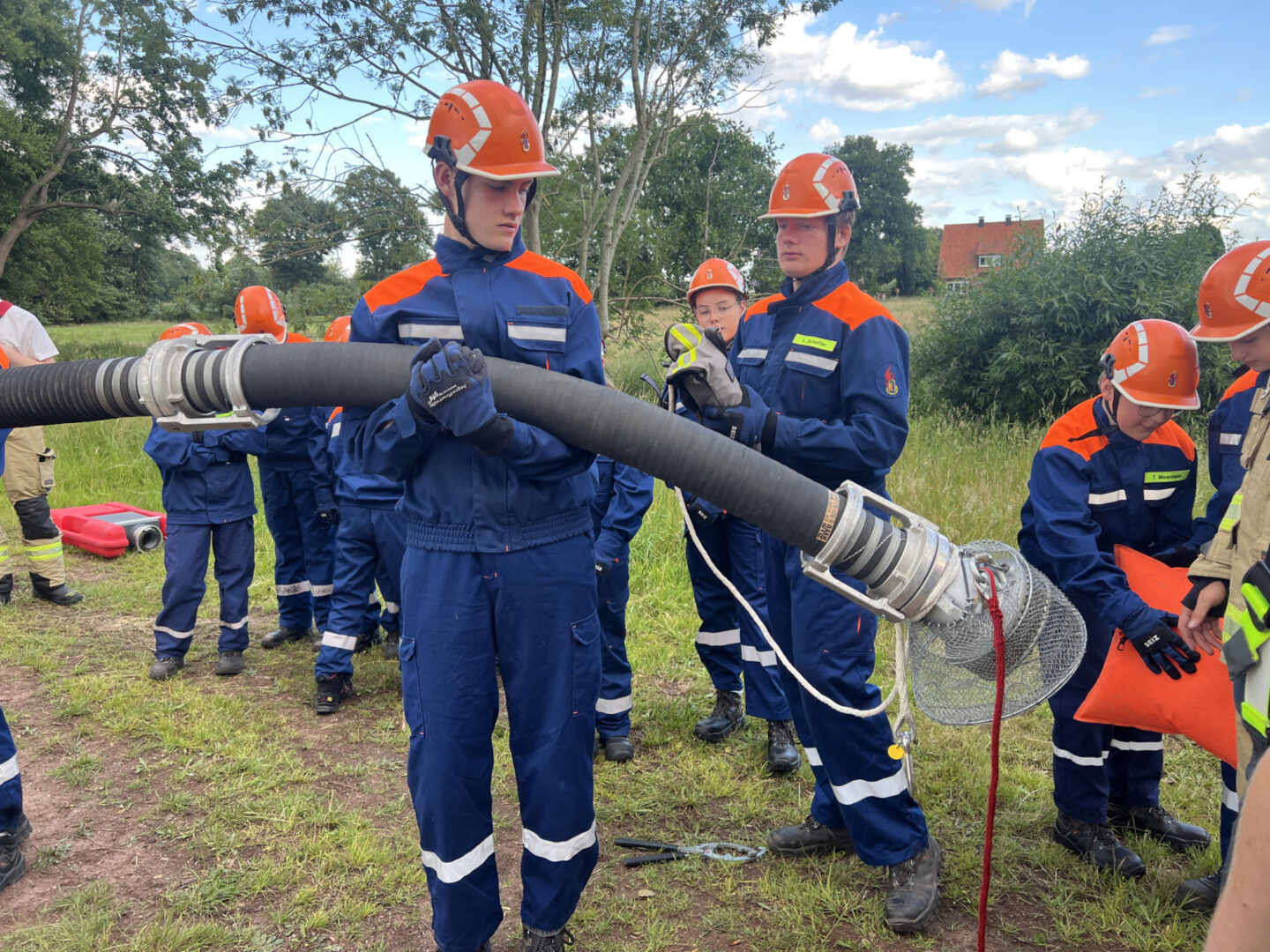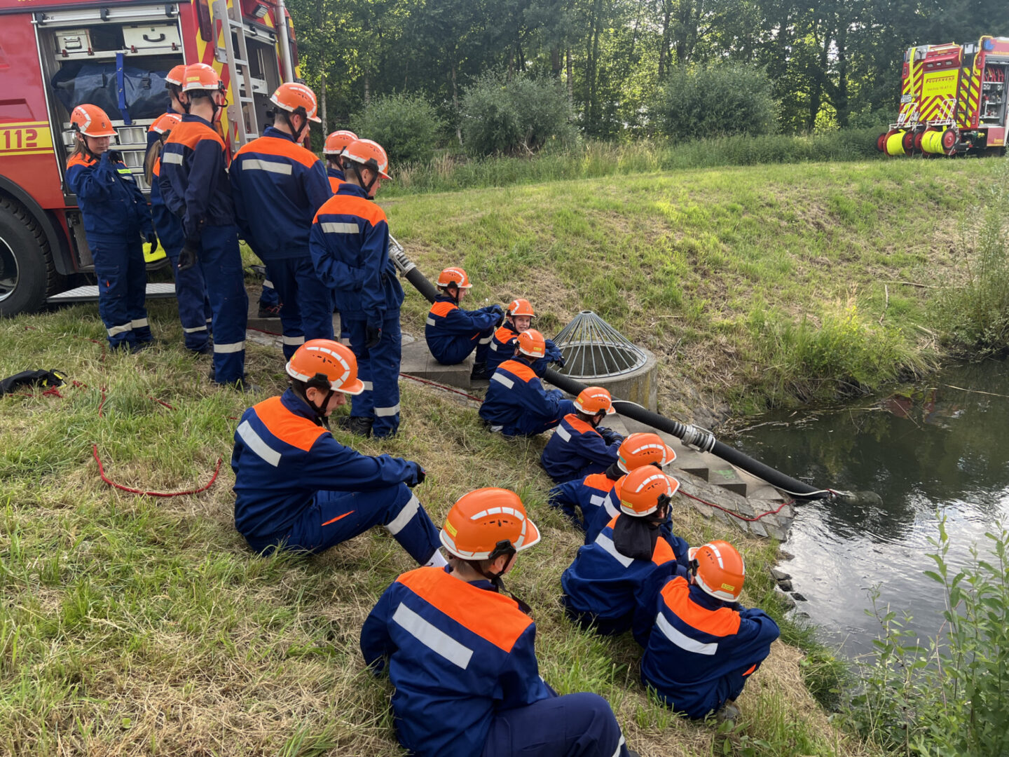 Kurz vor Beginn der Sommerferien stand für die Kameradinnen und Kameraden der Jugendfeuerwehr ein besonders praxisnaher und fordernder Dienst auf dem Programm: das Ansaugen aus einem offenen Gewässer.